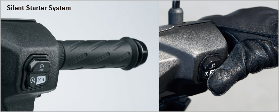 Theft deterrent key system with seat opener functionYou can quickly open the shutter that conceals the ignition key hole using the easy-to-operate magnetic mechanism coded to your key, even when wearing gloves. And the shutter closes again with a simple push of a button. There is also a handy function that opens the seat with the key still in the ignition, giving you quick access to the underseat utility compartment and fuel cap. -